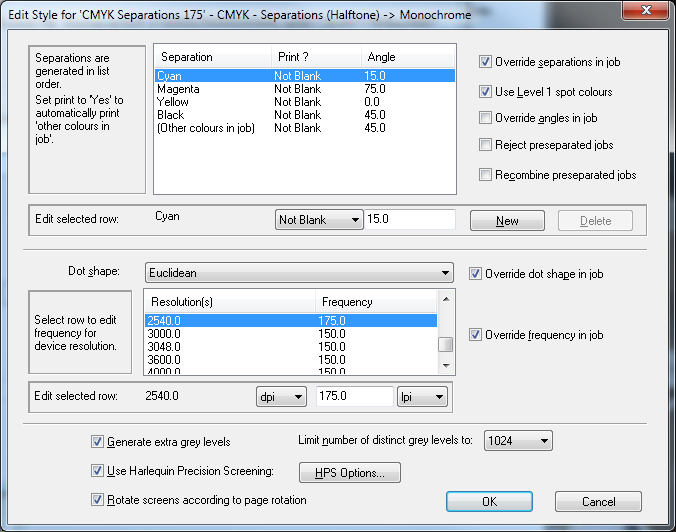 There are also options for Harlequin Dispersed Screening, an advanced second generation stochastic (FM) screen for even higher detail without compromising smooth blends, and for Harlequin Cross-modulated Screening a powerful blend of the two screening types allowing smooth AM tints at very high line screens in the mid-tones but transitioning to FM screens in the highlights and shadows to ensure no dot is too small to print.