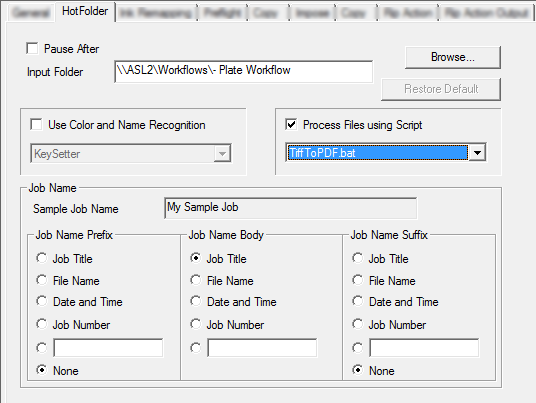 Scriptable hot folders run incoming files through user creatable scripts giving you unlimited power to process any type of file. For example sort incoming files into different workflows based on the page size, or send particular file types to external processes to convert them into optimised files. Then the workflow can collect the result and move the files on for processing. The possibilities are endless.